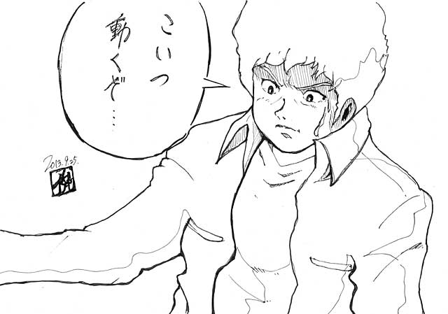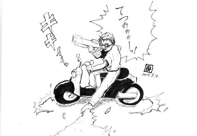 7年後、原チャリで金田バリになにかと闘う自分を描いてみた。in オリンピック会場