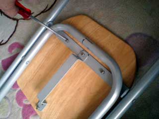 腰を下ろす部分の板が本体の金属フレームから外れただけの話ではあるのですが。