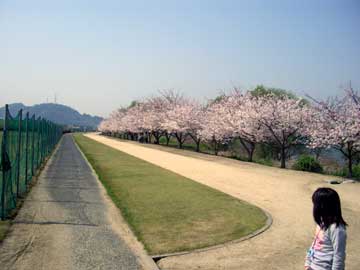 娘2人を連れて近くの河原に行ってみますれば、期せず満開の桜に遭遇。
