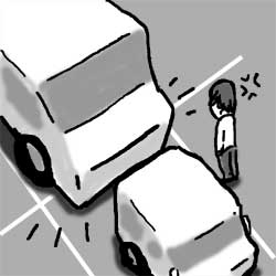 自分の軽四の後ろにつけた大型四駆が、ラインを大幅に超えて駐車していました。