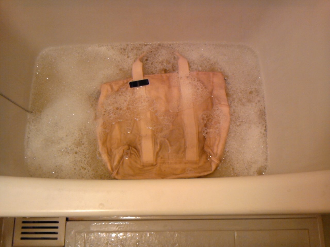 湯船で漬け置き(フォト参照)した後、トドメに洗濯機で回してみました。