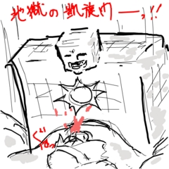 お題 【凱旋門】 に対しては、キン肉マンでおなじみ 悪魔超人 サンシャインの必殺技『地獄の凱旋門』が脳裏に浮かんでしまい思わず描いたものの、「あれ?この技喰らったのってジェロニモだっけ??」というウル憶えさ加減。