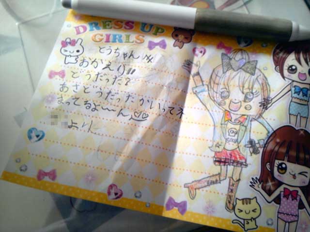 深夜、帰宅したら机に置手紙。